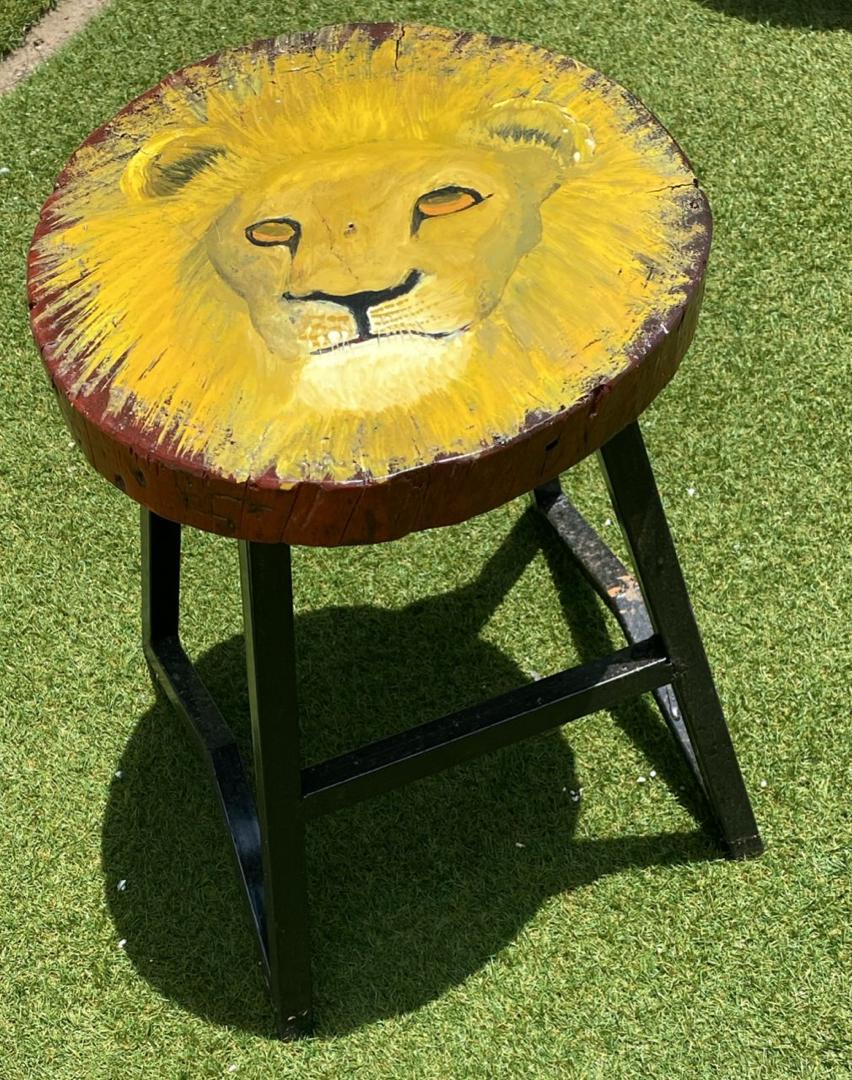 Supported by a sleek and durable metal base, the stool offers stability and versatility—ideal for use as a seat, a stylish side table, or even a decorative statement piece. Whether placed in a living room, patio, or artistic workspace, the Lion Stool is sure to be a conversation starter. Elevate your furniture collection with this timeless blend of art and functionality.