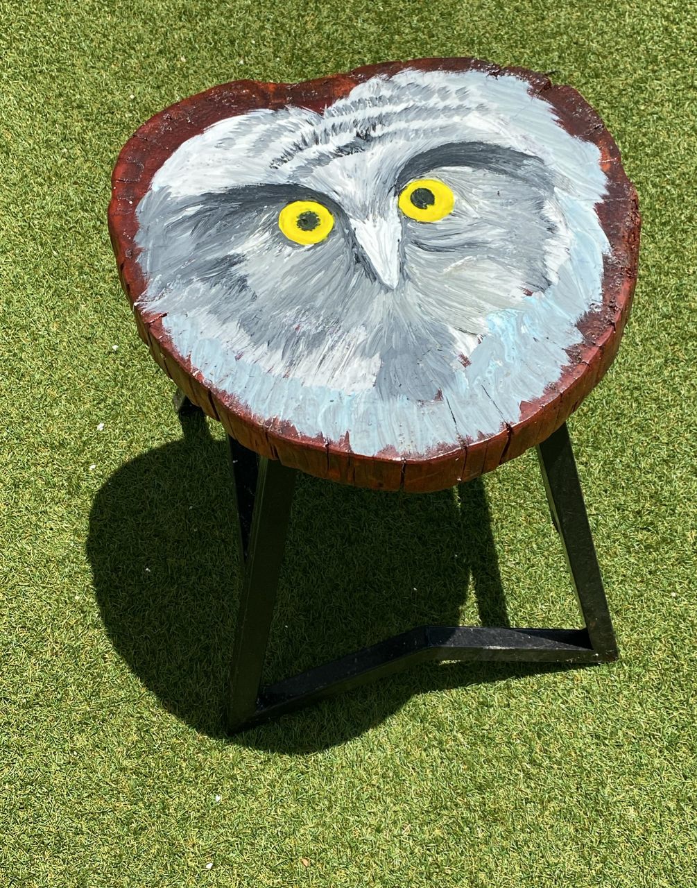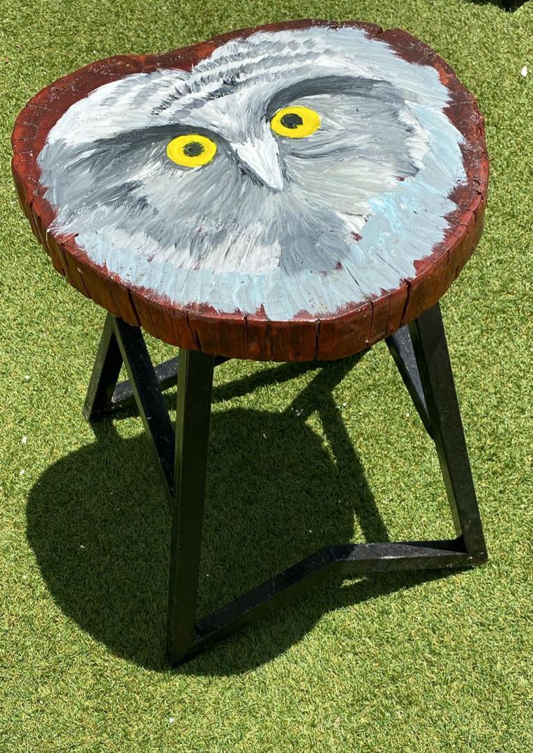 Supported by a sleek and durable metal base, the stool offers stability and versatility—ideal for use as a seat, a stylish side table, or even a decorative statement piece. Whether placed in a living room, patio, or artistic workspace, the Owl Stool is sure to be a conversation starter. Elevate your furniture collection with this timeless blend of art and functionality.